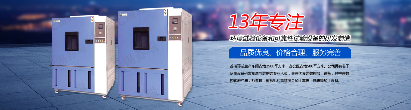 無錫市蘇瑞試驗設備有限公司是從事環境試驗設備和可靠性試驗設備研發、制造和銷售為一體的綜合性企業,公司質量管理已與國際接軌,已通過了150 9001:2000質量管理認證、CE認證,并獲得江蘇省質量信得過企業,無錫市3A級重合同守信用企業。已取得“蘇瑞環試聲”標注冊證書。